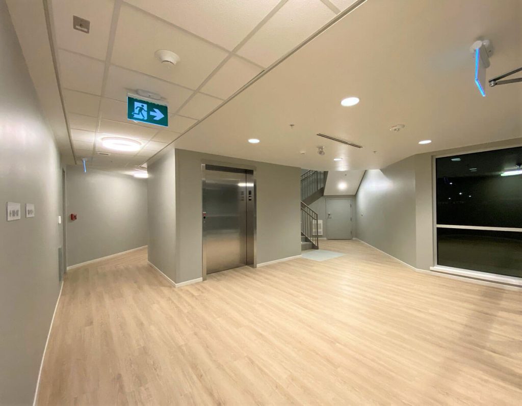 Construction of this new 29,569 square-foot, two-storey apartment building consisted of civil services, stormwater management, driven steel H-pile foundation, engineered wood truss framing, energy-efficient building envelope, fibre-cement siding and triple-pane fiberglass windows, gypsum cement underlayment, architectural woodwork, sustainable interior finishes, two-stage hydraulic elevator, electrical, mechanical, fire protection and security systems. Additional building features include one-, two- and three-bedroom suites, accessible amenities, exterior pergola, fitness centre, yoga studio, laundry facility and lounge. The utilization of local resources have ensured the project’s target of 3 Green Globes Certification is achieved which will minimize environmental impacts, reduce operating cost and optimize occupant comfort.